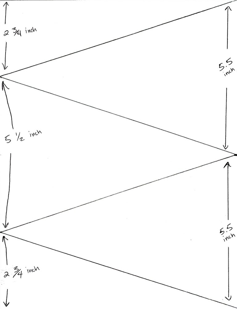 1. Using the template as a guide for measurements cut out triangles from your choice of colored card stock (regular 8.5 x 11) we used red.