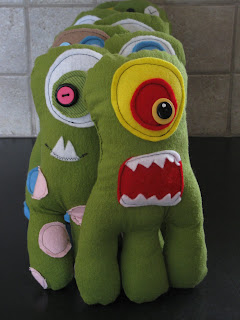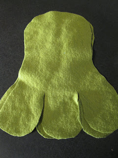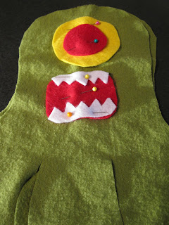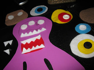 I began by creating a template {in purple} and cutting monster parts out of felt material.