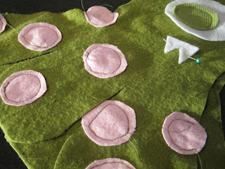 And began sewing my parts on. Sewing circles? Go slowly as you guide your fabric through your sewing machine. For the smaller circles I stopped sewing with my needle through the fabric, lifted my sewing foot thingy {sorry I don’t know what it’s called lol}, turned my fabric, put the foot thingy down and continued sewing.