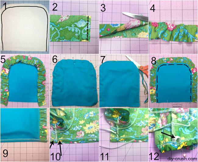 This tutorial shows you how to add ruffles to a plain sun suit bib pattern.