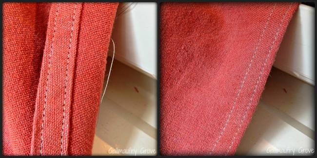 Turn up the hemline about 1/2 inch. Press. Turn up hemline again. Press. Sew in place.