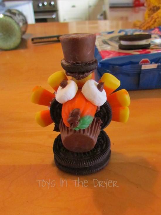 Step by step directions on how to make an adorable turkey out of candy…a great project for post Halloween leftovers.
