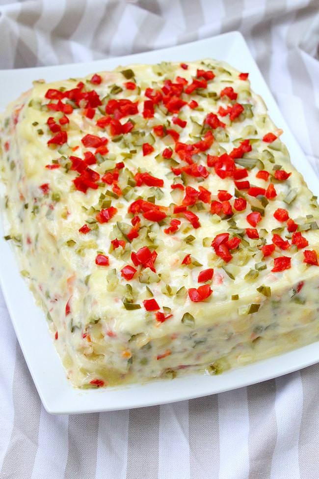 A picnic essential, this chicken peas pickles salad works great as a main dish or side salad. Yummy and luscious, this packed full of flavor dish is perfect for any occasion.