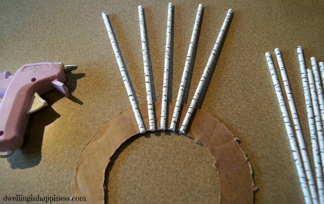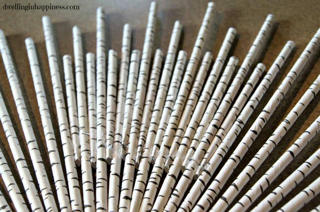 I have seen a few paper straw wreaths on Pinterest and wanted to make one. I found these amazing birch straws, and used them to make myself a pretty wreath! I spray painted some leaves gold too and added them to make it more fall-ish!