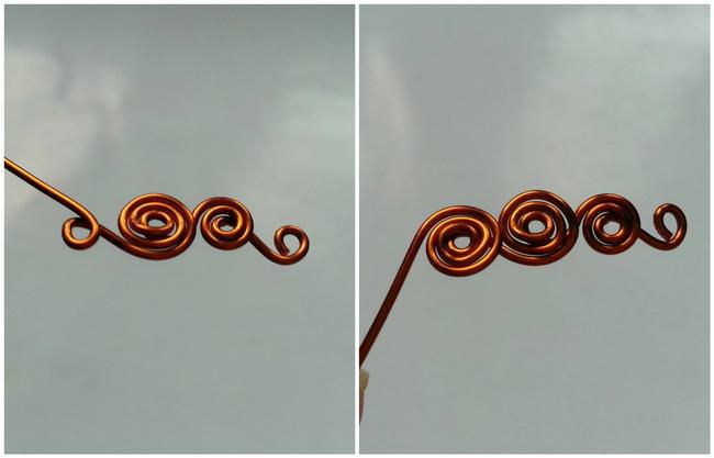 For each swirl you’ll have to make a loop first. After making the first swirl, make another loop near it but wind the wire in the opposite direction of the previous loop, (keep 0.5 cm gap between the second swirl and the third loop). Now simply wind the wire around that loop for 2-3 times. Continue to do the same.