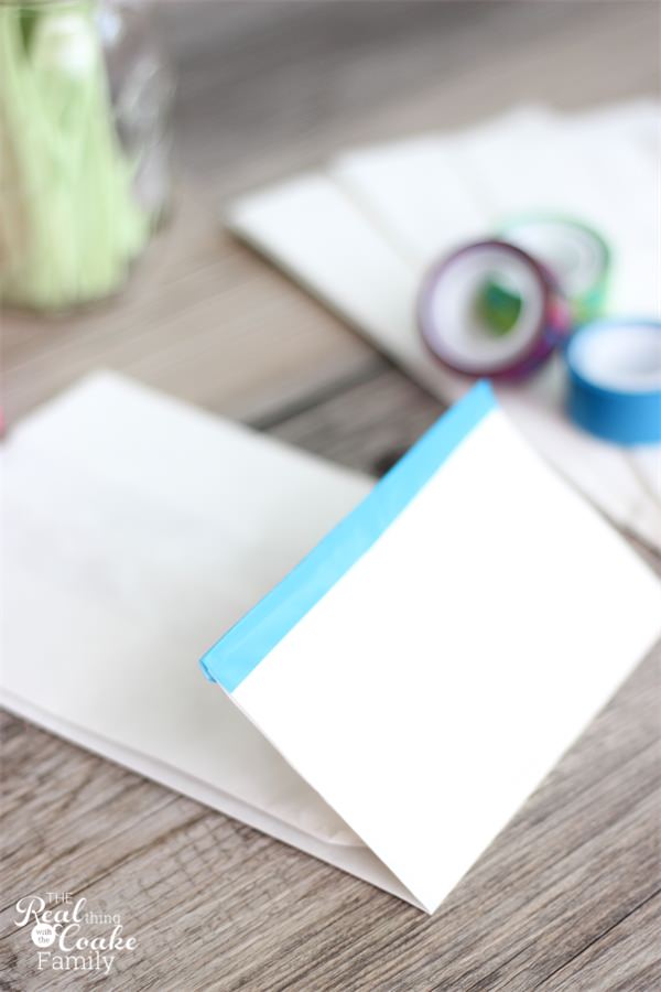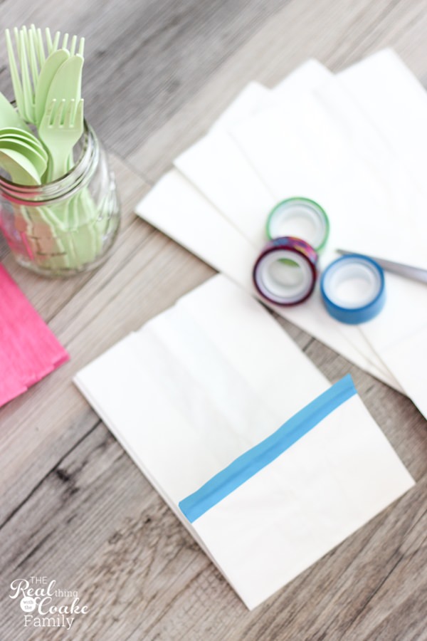 Cut a length of washi tape that will fit the bag. Place half of it on the bag.