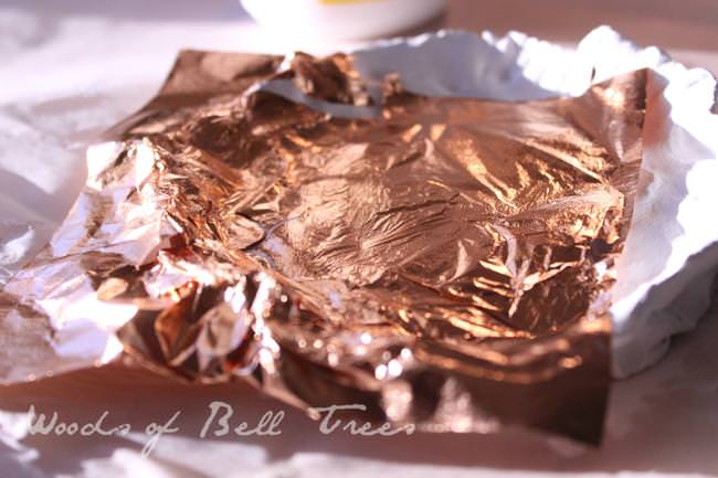 Once your tray is dry follow the directions on your adhesive and apply your metal leafing. When adhesive has dried, give your leafing at least one coat of sealer/varnish to protect the metal from coming off and or oxidizing.