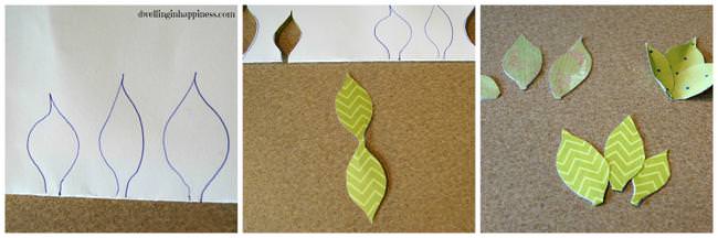 I then used green paper and cut out little leaves. I taped 3 together to make a larger one and glue it on the side of the stem on the pumpkin.