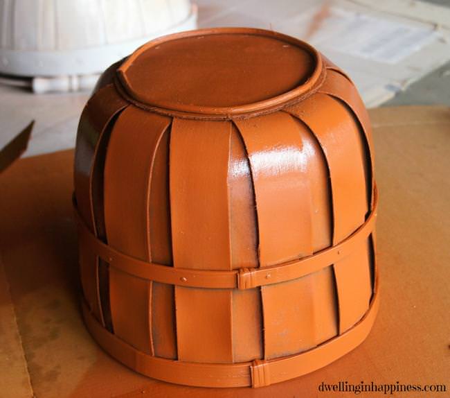 I was staring at a basket I have and was trying to figure out how to incorporate it into my fall decor. I decided to turn it upside down and turn it into a little pumpkin basket instead! So easy and cheap, too! For more detailed instructions, visit my blog!