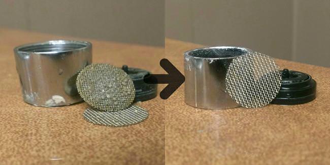 Remove any remaining buildup with a nylon brush and some hot water. The aerator should be much cleaner now.