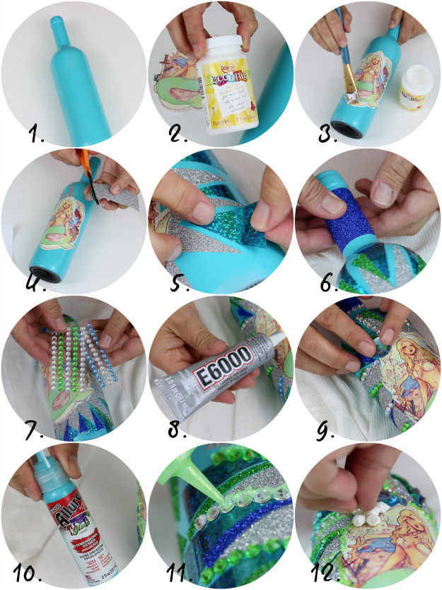 Make mixed media mermaid bottles to save sand from your last beach vacation or fill with bath salts! A fun project with absolutely no rules!