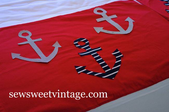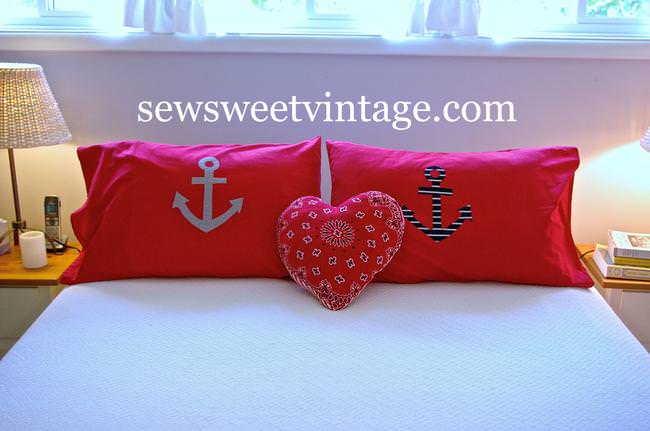 How-to make an awesome anchor pillowcase using fabric fuse and recycled fabric for a beautifully beach style bedroom all year!
