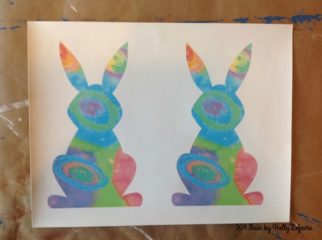 In the past I have made my bunnies larger (one bunny per 8.5″ x 11″ sheet of paper) but I decided to go smaller this time (Using Microsoft Picture Manager I printed out 2 per sheet using the 5 x 7 setting).