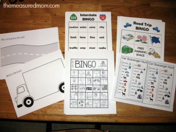 Older kids might enjoy these free printable road scavenger hunt and BINGO pages. If you’d like, laminate and let your kids complete them with dry erase markers. Then they’re all ready to go for your NEXT big trip!
