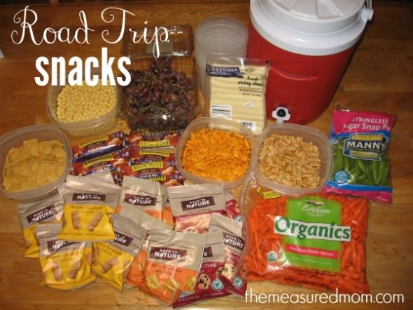 I have to admit that the easiest way to keep my kids busy on long trips is to feed them! I found a variety of fun new snacks as a special treat and packed some healthy favorites as well. I packaged them in individual ziploc bags and clipped four bags together with a clothespin. When it was snack time I just grabbed a set of snacks and passed them around to our four older kids. After I took this picture, I also prepared a ton of air-popped popcorn. The kids love it and it takes a long time to eat ;).