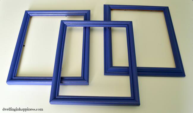 Spray paint the frames. While they dry, cut out wood paper to fit inside the frames.