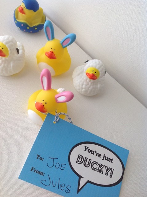 For the last – heck forever, my daughter has been obsessed with rubber ducks. Last year she passed them out as her Valentines (no candy!) and she just wrote on a tag. This year she wants to do it again, but I got smart and made some adorable printables for her…and for you! Just print them out and pair them with a rubber duck and your kiddo will have a super cute and memorable Valentines to pass out.